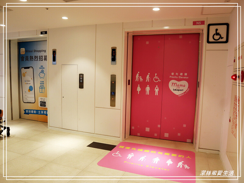 除了有普通電梯,也有設置友善電梯,因為推著嬰兒車的家長們真的很多~