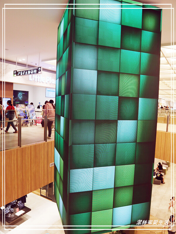 旁邊這六角挑空區LED看板很有趣哦!是立體柱狀螢幕,以超疑真的3D動畫顯示,而且圖案變化很多,每次經過都有不同的變化,很值得一看。