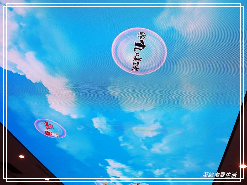 回頭發現空橋影像又變啦,除了從海洋變成美麗的晴空外,上頭一個個飄過來的泡泡們也別有深意!有發現每一個都是Lalaport裡進駐的品牌名稱嗎XD,覺得相當有巧思呢~