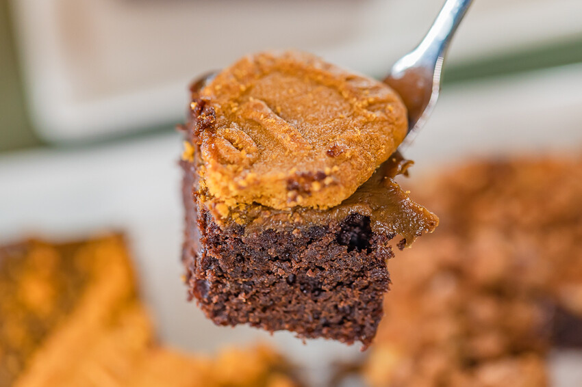 ▲▼布朗尼表面淋上咖啡牛奶糖醬,咖啡香濃卻因為融合牛奶糖沒苦味,布朗尼層的濕潤和牛奶糖的黏牙,還有咖啡和巧克力的苦甜交錯,每一口都是一種享受,配上Lotus脆餅,這款脆餅常見與咖啡搭配,微微肉桂香與濃郁焦糖味,跟咖啡很合拍呢!