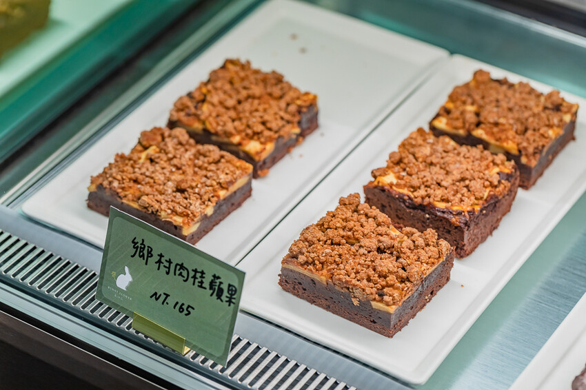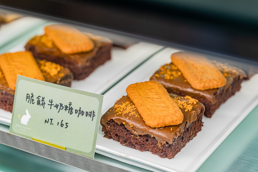 ▲兔仔花的特色之一是採用夾心設計,將內餡置於布朗尼或司康中間,讓每一口都能吃到豐富的滋味。布朗尼的內餡有奶油乳酪、巧克力等,司康的內餡有鮮奶油、果醬、奶油乳酪等。