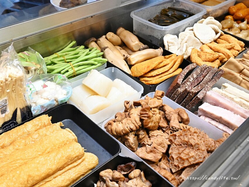 滷味採自助夾取,品項非常多樣化,陳列整齊在滷味櫃中,夾取完再交給櫃台切盤淋醬
