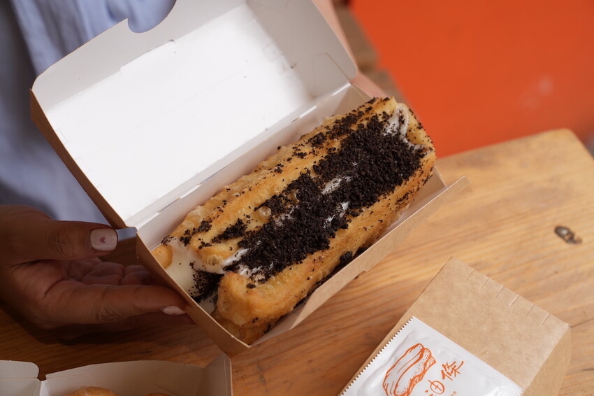 接著就是DoReMiSo~將油條跟鮮奶麻吉尬佐伙,其實這種組合我還是第一次見到。這樣可還沒結束,要再撒上甜甜脆脆的Oreo碎碎,才是真正大功告成!