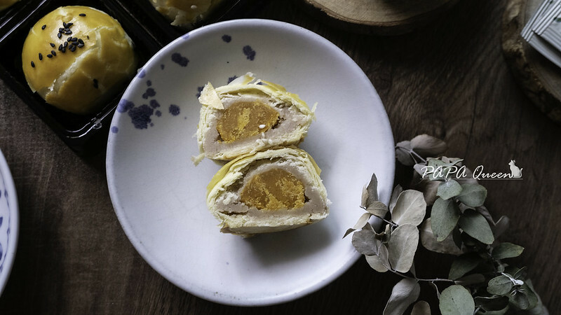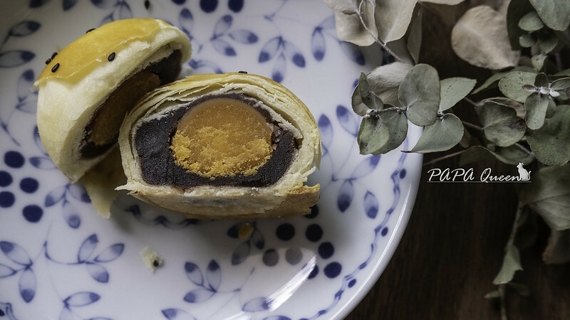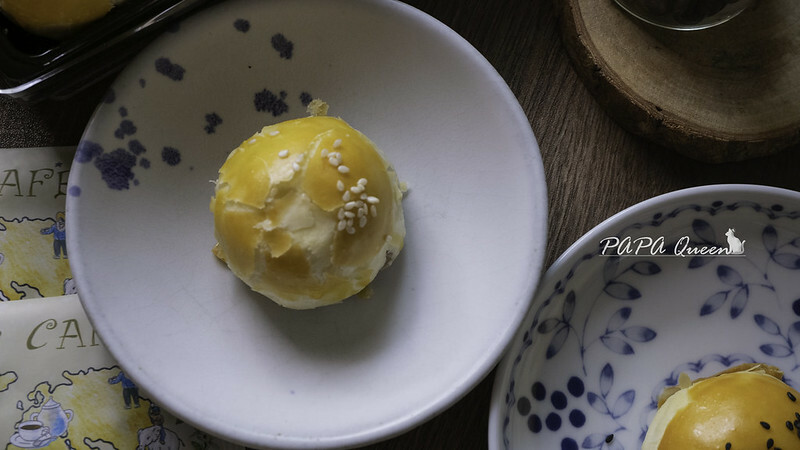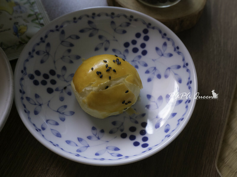 淡淡芋頭香氣很搭起司,芋泥本身比較鬆綿刀下去就被我壓壞了,反正不是合作文就這樣吧!多真實啊!大貓娘說這款芋頭也好吃加上他本身就愛吃芋頭,所以兩款月餅到手他就吃了,就站在PA旁邊盯著…