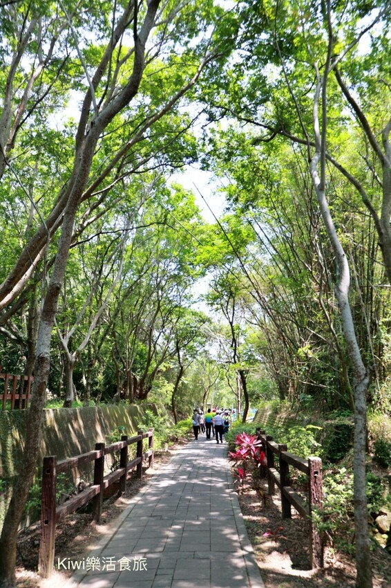 尚禹橋前的林蔭步道,走在其中很愜意,尚禹橋是做紅色拱門的陸橋在2017年在舊鐵路上興建的呦!