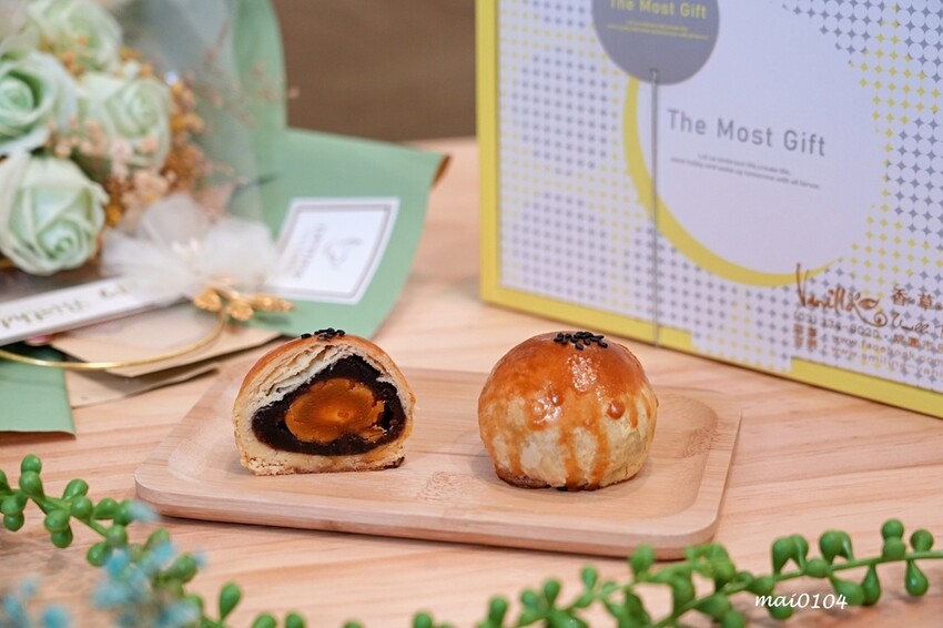 而香草蛋糕舖的蛋黃酥是採用古法製作的紅土鹹蛋黃,口感帶點濕潤且沒有腥味