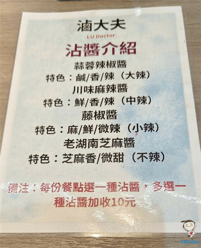 因此櫃檯上還有這張沾醬介紹,從小辣到大辣都有,方便客人選擇自己偏好的口味