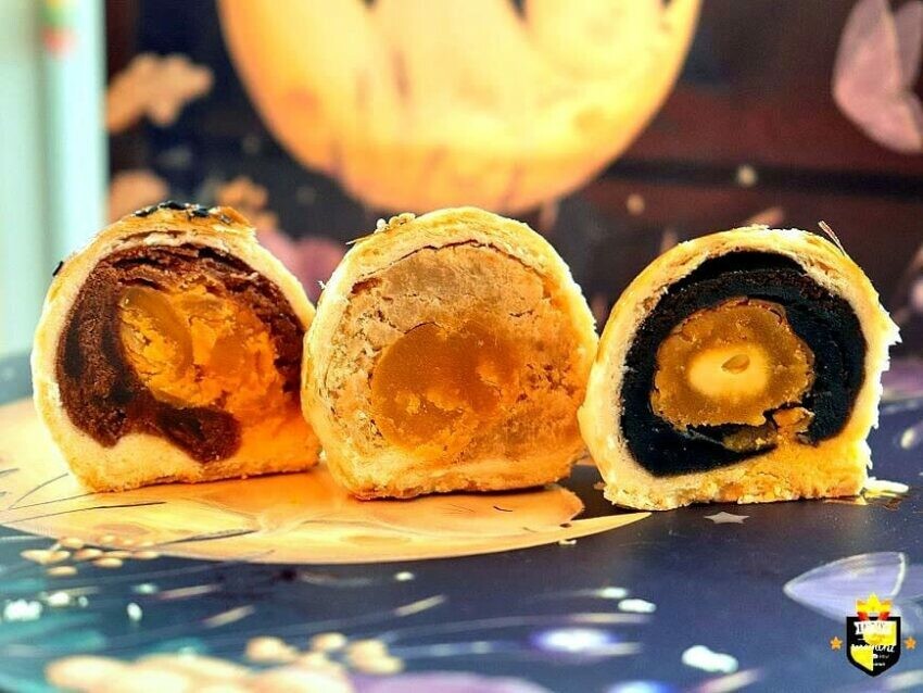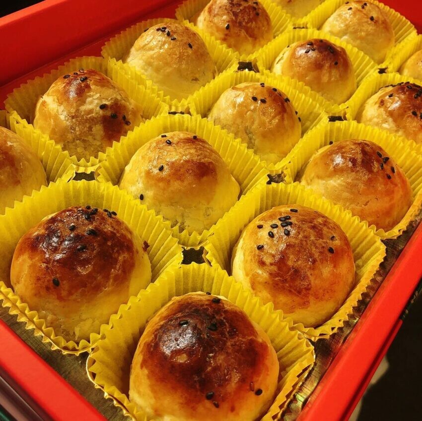 蛋黃酥口味有烏豆沙、鳳梨、棗泥、綠豆、及菠蘿蛋黃酥等五種,料多豐富以外,外皮濃濃的酥油香氣配上軟硬適中的蛋黃合作無間,創造完美的整體感,口味部分大家首推的是不過甜的「棗泥蛋黃酥」,另外創新的「菠蘿蛋黃酥」及「綠豆沙蛋黃酥」也是嚐鮮的好選擇。