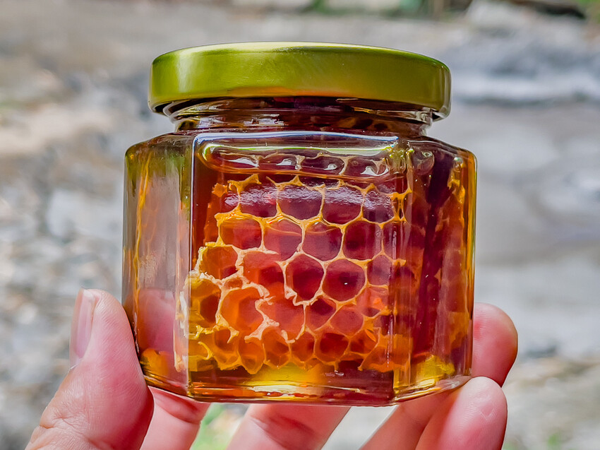▲買了一瓶小瓶的蜂蜜,還帶有蜂巢呢!