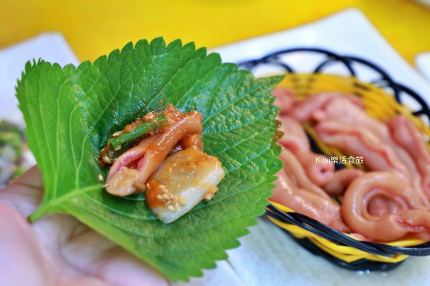 海腸很適合包芝麻葉再給一點胡麻口感的醬,味道會更不一樣,至少比海鞘好吃很多!