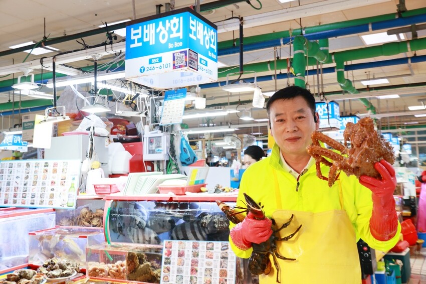 看著這些海鮮,沒以往在台灣海鮮市場的海藻味道,在韓國吃海鮮就是新鮮無味,完全鮮度滿滿,我們有再次詢問寶藏商會的老闆,老闆說,他們的海水就是這樣沒什麼味道,連鹽分都少,好清澈,還讓我們觸摸跟沾取來試試看味道。