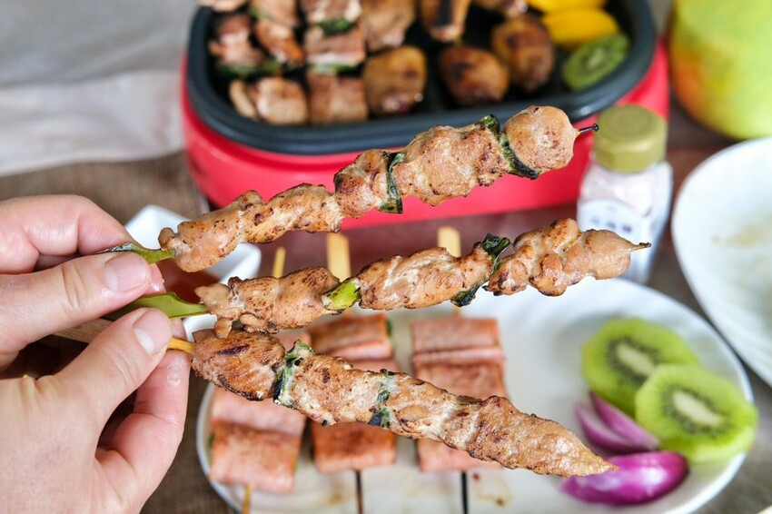 ▼鮮嫩青蔥雞肉串使用臺灣CAS國產雞肉,搭配青蔥打造出豐富口感,軟嫩好咬,每一口都香氣四溢好誘人~