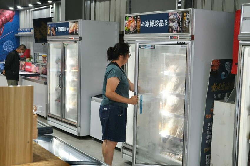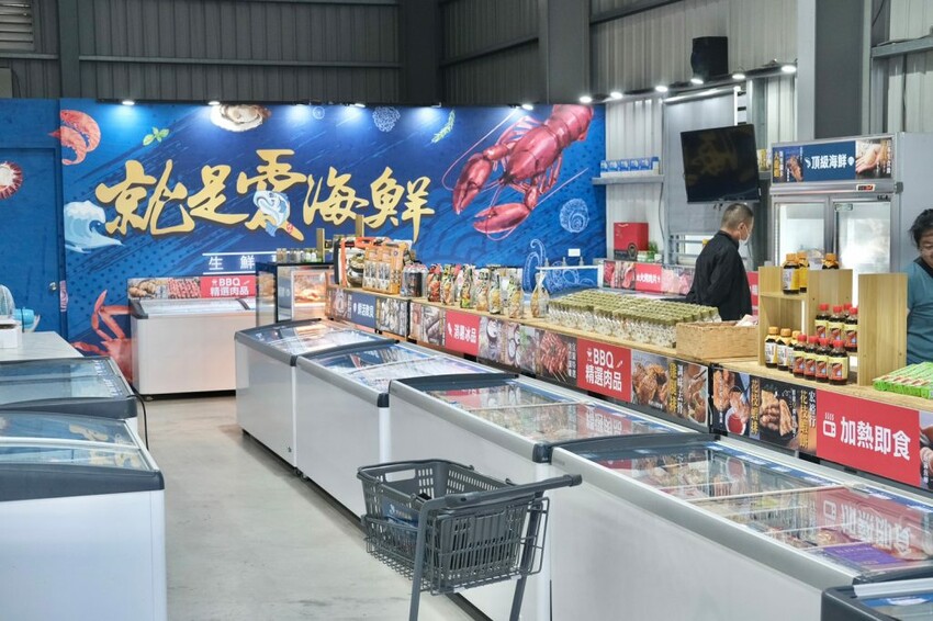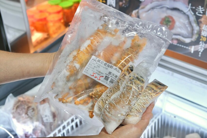 ▼【就是愛海鮮】店內販售的品項多元豐富,有多達6-700種冷凍冷藏商品,環境乾淨且明亮,價格也都有清楚標示出來,有提供購物車可以讓大家任意挑選,無論是公司行號烤肉或是露營烤肉都能在這裡買齊!