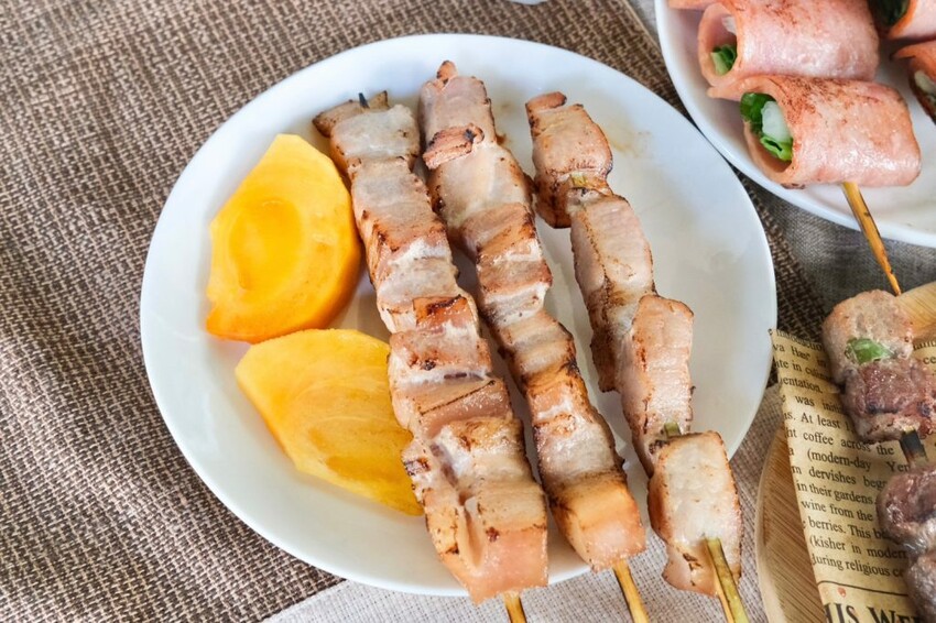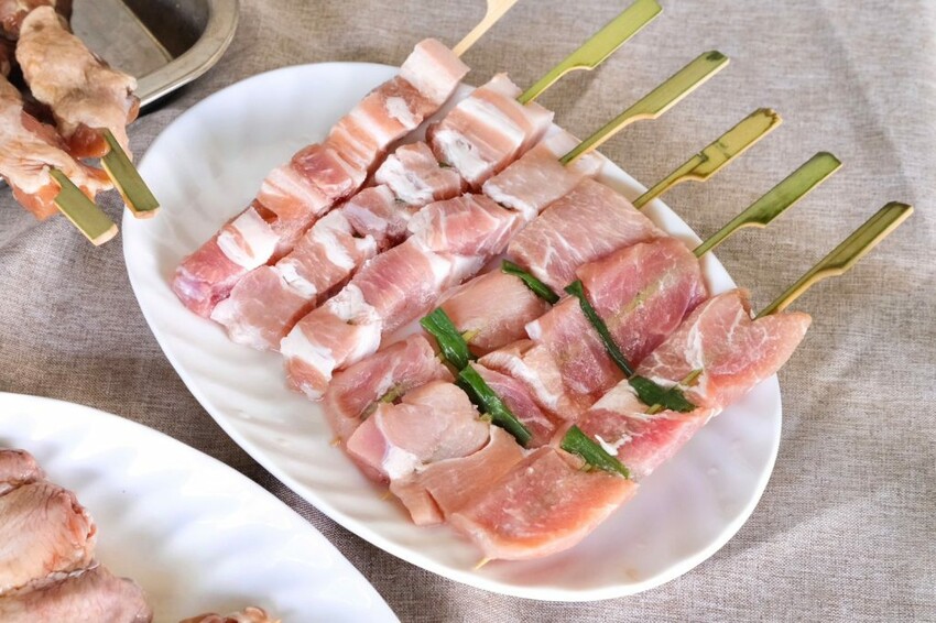 ▼鮮嫩豬肉串嚴選臺灣CAS豬肉搭配青蔥段,肉吃起來緊實不乾柴,帶有明顯的肉香,不用沾醬就很好吃!