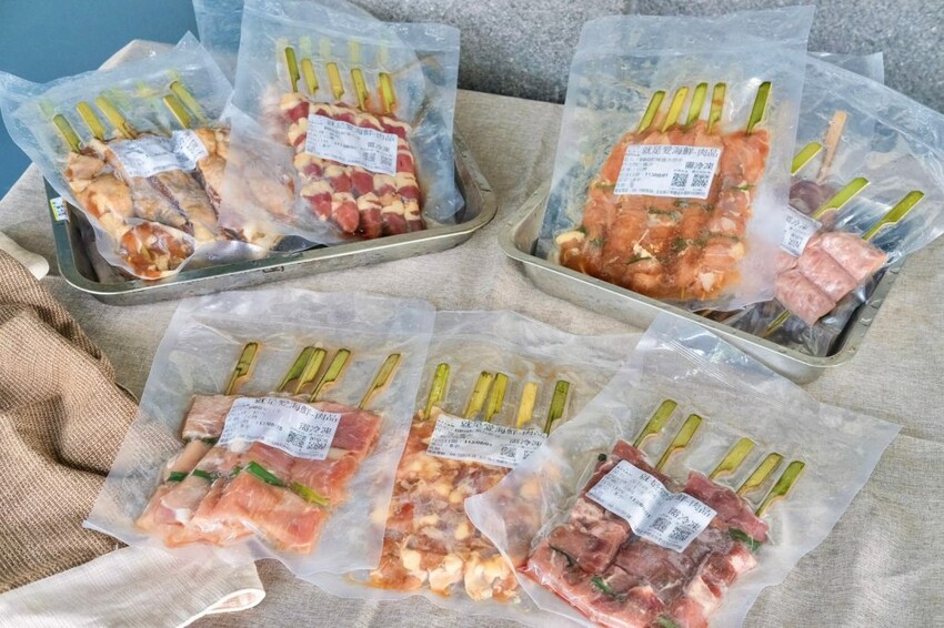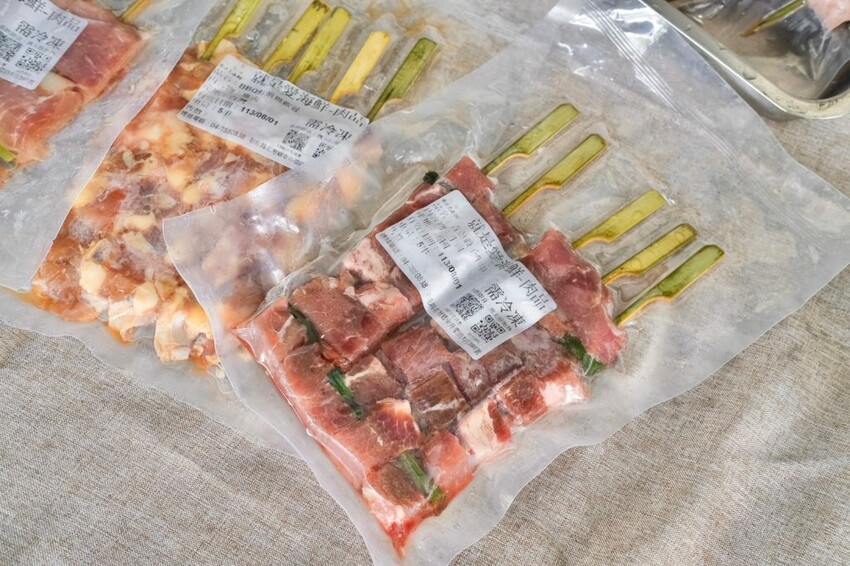 ▼工廠自營生產的烤肉串,食材全部都已經幫我們串好,以真空袋包裝衛生又方便,要吃之前放置冷藏退冰,就可以直接開烤!