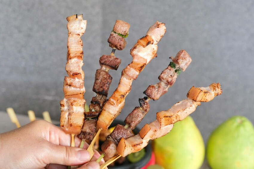▼超大捲的培根三星蔥串,培根烤後恰到好處的油脂,交織三星蔥的特有嗆香風味,讓人不知不覺一口口停不下來!
