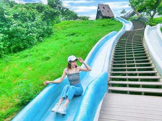 新竹香山青青草原擁有得天獨厚地理環境,在山裡體驗超長溜滑梯,整個就是療癒!而且還不只照片中的一座溜滑梯,整整有四座不同顏色的溜滑梯,每一個長度、陡度、速度都不一樣,照片打卡快蒐集起來~