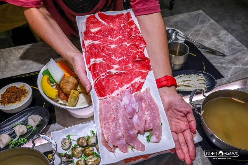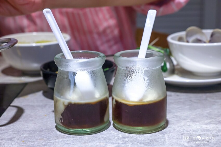 牛五花肉嫩好吃,厚度也不會很薄,新鮮蛤蠣還附上一小杯米酒和薑絲,可以增添湯頭的清甜。