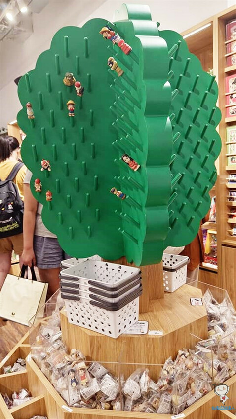 橡子共和國店中間還有這棵綠色的樹,剛好可以放上各種卡通人偶