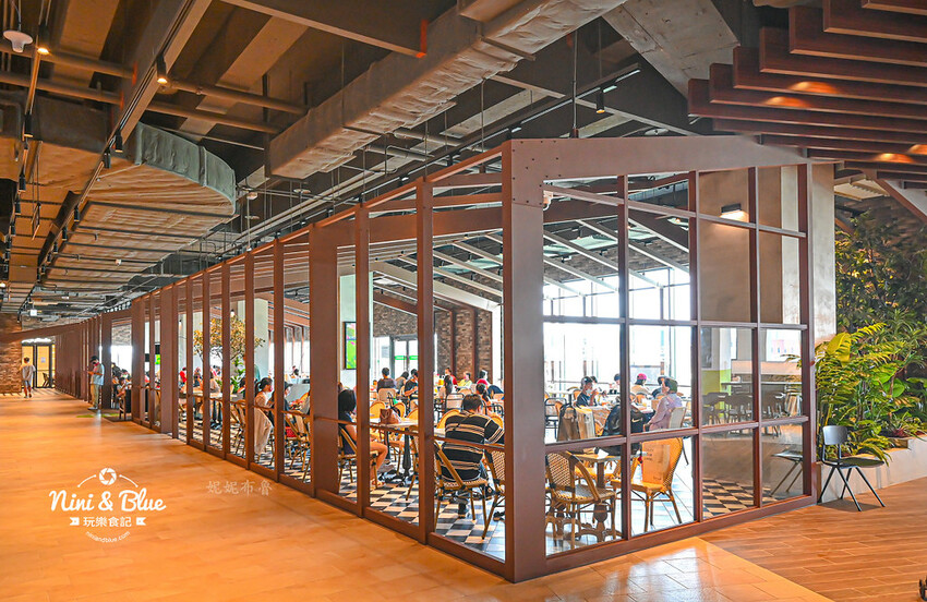 LaLaport北館美食街用餐空間分成好多種樣貌,在這小屋窗邊的部分座位可以看到湧泉公園的星泉湖、帝國製糖廠,是台中各大百貨中唯一一個可以邊用餐、邊賞湖景的百貨美食街