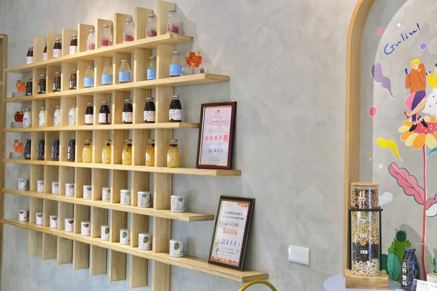 ▼【谷溜谷溜GULIU GULIU】展示各式各樣的產品,包含飲生飲品和粥品系列,還有與其他店家合作產品,例如檸檬大叔的檸檬磚等…,都可以在這裡一次買到~