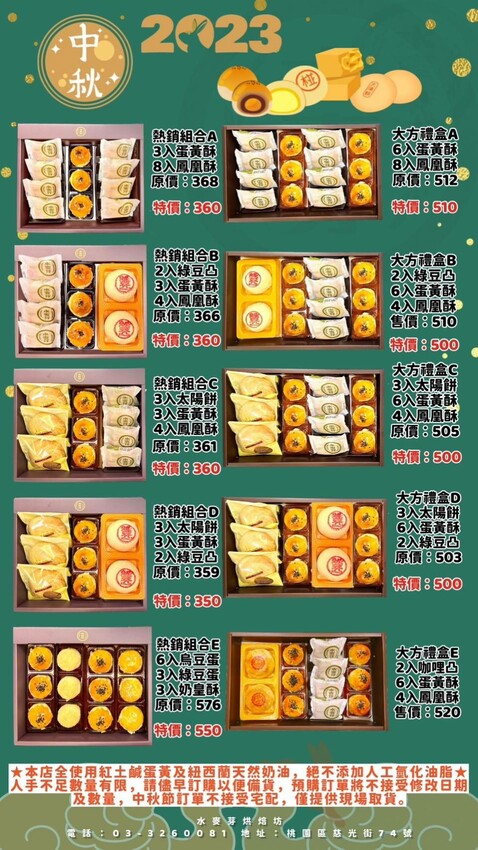 水麥芽菓子烘焙工坊2023中秋禮盒DM,禮盒有多款選擇,隨客人挑選。