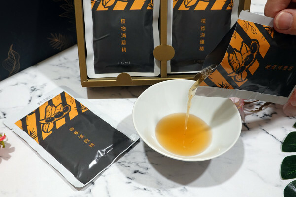 裡面的滴雞精也作成獨立的單一包裝,背面印有詳細的商品資訊及食用方式說明,外出時放包包或想攜帶到辦公室飲用都很方便。