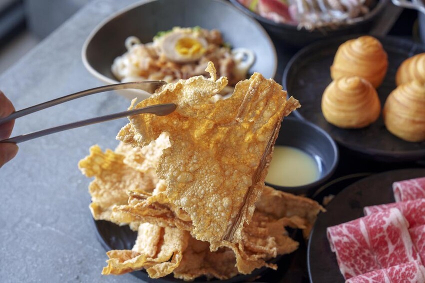 推薦可以點嘎嘣脆炸豆皮跟炸魚皮搭配川香酸菜魚白湯,酥酥脆脆的很夠味~