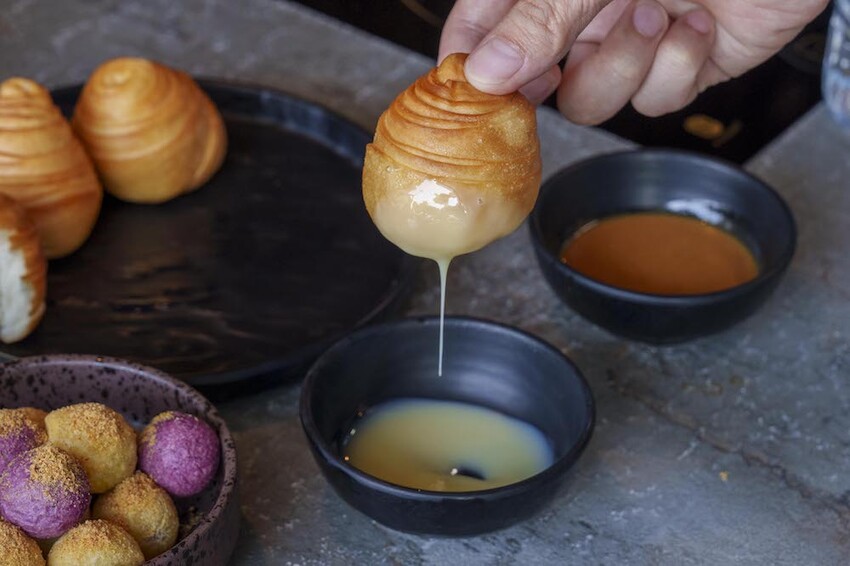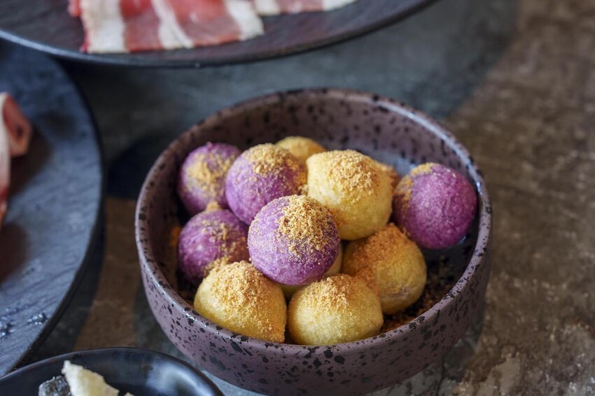 飯後還能來點炸煉乳饅頭、紫薯地瓜球當甜點,炸煉乳饅頭一份有四顆很適合大家一起分享,外皮金黃酥脆,搭配煉乳就很好吃啦~~