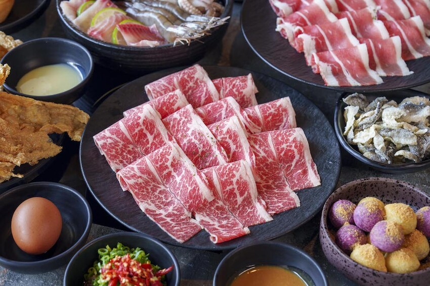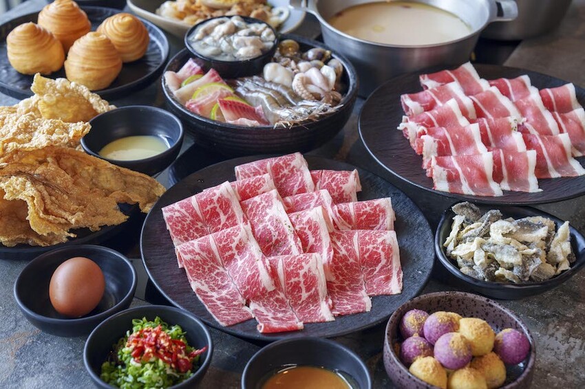 「森饗鍋物」的湯頭非常多元,主食的種類也很多,像是牛、豬、雞、羊肉和海鮮等通通有,還可以選擇海陸雙拼,怎麼配搭超滿足!!