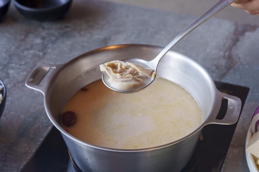 這次點了胡椒豬肚和酸菜魚口味的湯底來嚐鮮看看,胡椒豬肚湯帶有溫潤的辛香,湯頭的胡椒是微辣順口的滋味,整體口味蠻濃郁的,鍋底還有附上豬肚,軟嫩有勁很涮嘴~