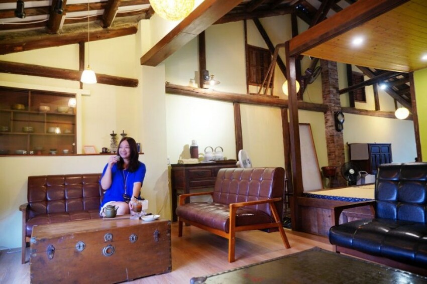 ▼來到二樓,有種遁入時光迴廊的錯覺,讓人彷彿穿梭到百年前的時光場景,坐在古樸的沙發椅上,感受斜頂木造屋簷與木質地板的特殊氣息!