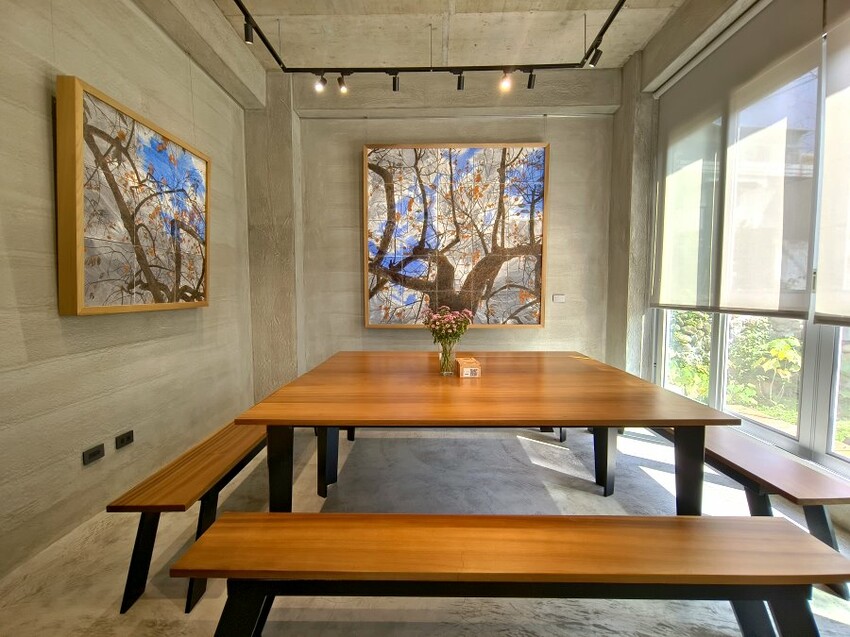 ▼二樓座位區的運用更加多元,牆面上的石柿連屏更加有張力,看起來就像是襯著石柿樹、仰望藍天的感覺,心情也隨之放鬆不少!