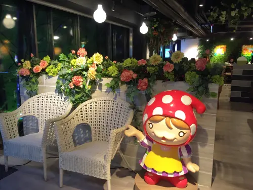 餐廳大門就擺放了可愛的蘑菇大娃娃 ,