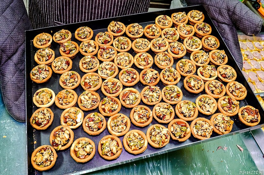 而且也了解到現在消費者偏好小巧精緻的糕餅點心,並將堅果塔改良成一口堅果塔的大小,份量剛好適合當下午茶點心,一口大小吃起來不會太膩口。