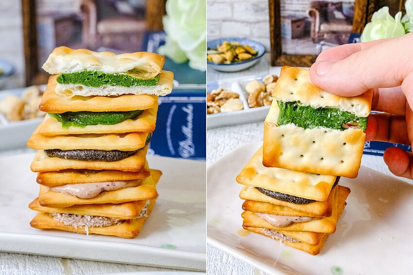 牛嘎餅的餅乾則是選用大廠牌中祥蘇打餅製作,每天下午會在工作室製作幾款口味。