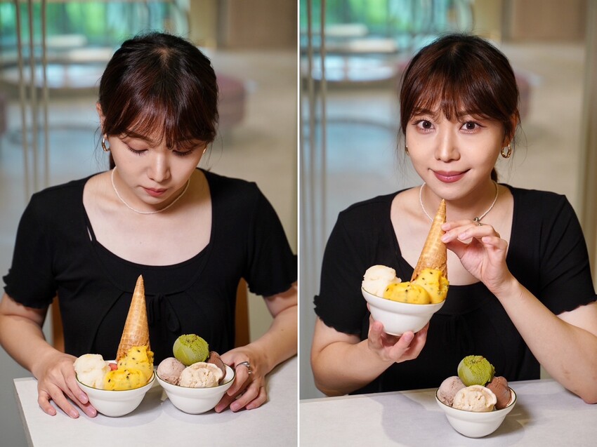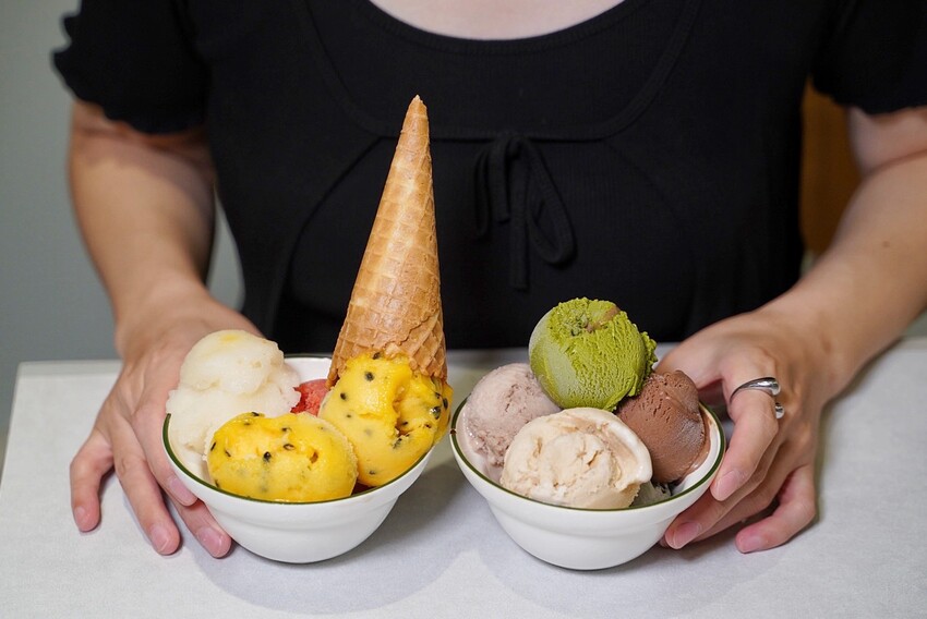 冰淇淋是果然匯的自有品牌「NO.24濃作GELATO」,大推水果雪酪系列,不加一滴水且純天然製作,入口即化散發出酸甜果香,真的好好吃。