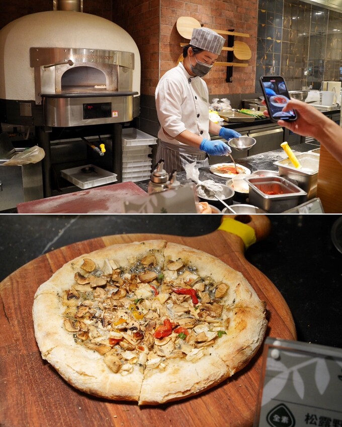 歐陸異國料理區有現炒義大利麵、現烤pizza、香煎猴頭菇、炙燒焦糖葡萄柚、熟食料理、湯品等等,這區食物是我當天最喜歡的一區。