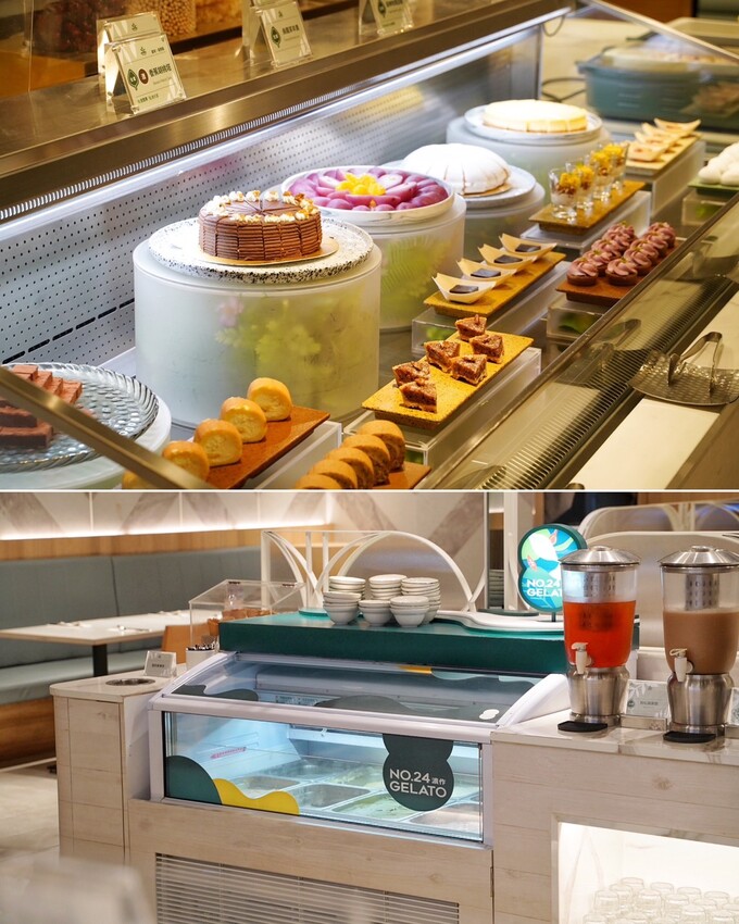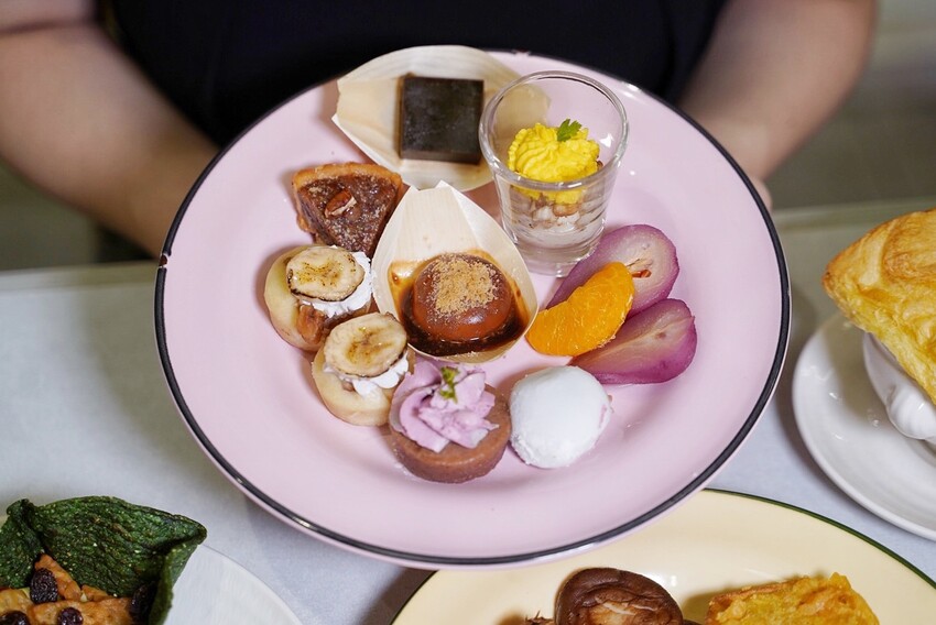 果然匯的飯後甜點超極豐富,包含南錫法式巧克力蛋糕、泰式奶茶蛋糕捲、紅酒燴洋梨、鮮奶油波士頓派、英式麵包布丁、可可杏仁酥餅、檸香瑪德蓮、抹茶大福、玫瑰水信玄餅等等,日式、台式、歐式、美式通通有,高達20多種選擇,另外也有椰汁桂圓黑糯米、銀耳紅棗蓮子湯兩款甜湯以及六款當季水果,真的是應有盡有!絕對能滿足你的第二個甜點胃。