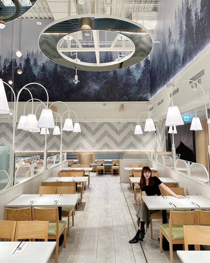 一踏入「果然匯竹北遠百店」就被那挑高的空間給吸引!餐廳正中央擺放了一棵樹,天花板周圍則有一整圈森林圖案,整個很貼近大自然的氛圍,讓用餐體驗更加放鬆舒適。