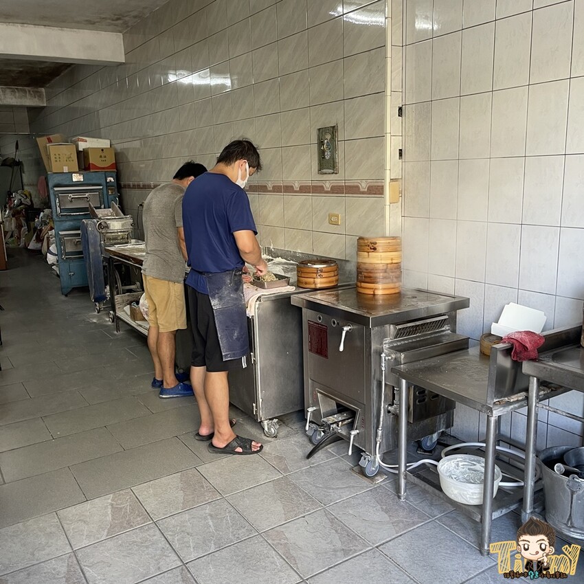 小籠包都是現擀、現包、現蒸,可以看到第二代老闆手擀麵皮,包上蔥肉內餡後,放入蒸籠內蒸。