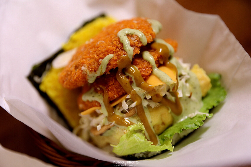 餐點品質好 嚴選越光米 搭配上各種海陸配料堆疊而成的餡料