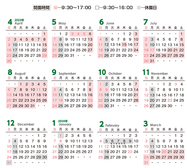 原則上是9:30-16:00,禮拜一休園,BUT、BUT