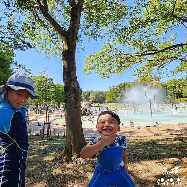 好啦~弟噗媽在行程規劃中就決定要帶孩子玩水,所以也從台灣帶了泳衣,日本這邊玩水戶外不用戴泳帽。看兩兄弟這麼開心的表情,真的好值得!!
