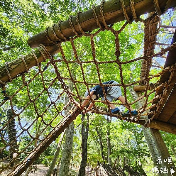 引導恐龍先到森林攀爬區熱身一下,弟噗媽先說,這邊根本就是兒童版的極限體能王闖關區,本以為他們會沒興趣,沒想到玩越開心,到處爬起來