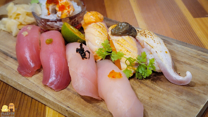 這次點的8貫有鮭魚、鮪魚、旗魚..等,像是炙燒品類上還有加上蟹膏跟明太子,吃起來真的挺爽的,而且醋飯的比例很剛好,不會特別搶走魚類的原味