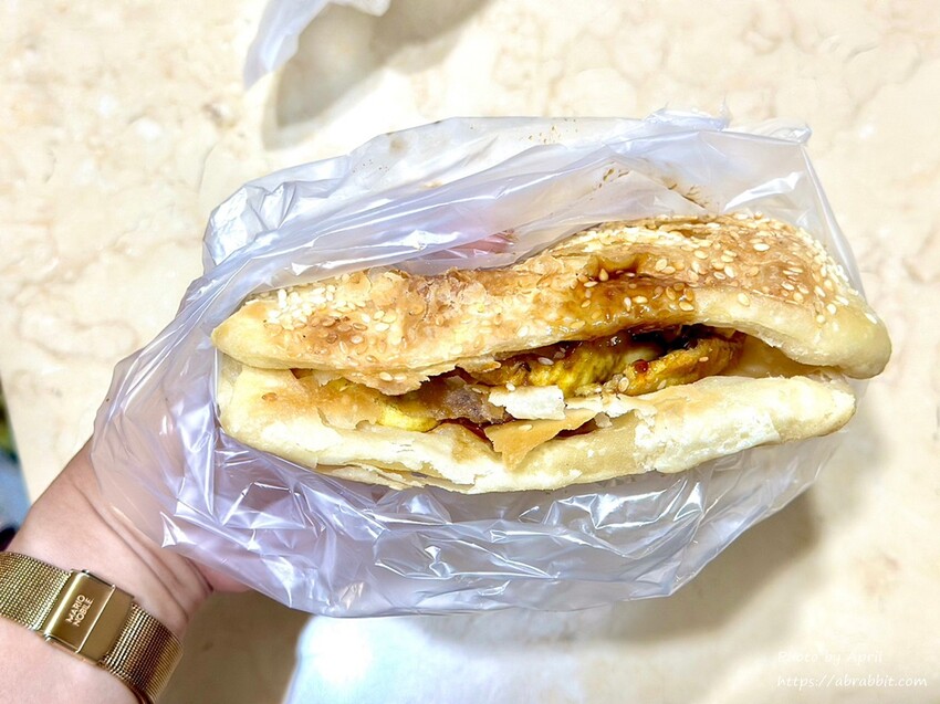 燒餅加蛋可以選擇想要加蔥蛋還是加荷包蛋,我個人蠻愛吃蔥蛋的,所以就選了蔥蛋!順便請他們幫我加醬油,醬油是直接淋在裡面。燒餅外酥內軟口感很不錯,搭配蔥蛋鹹香的滋味,整體吃起來我也挺喜歡的。