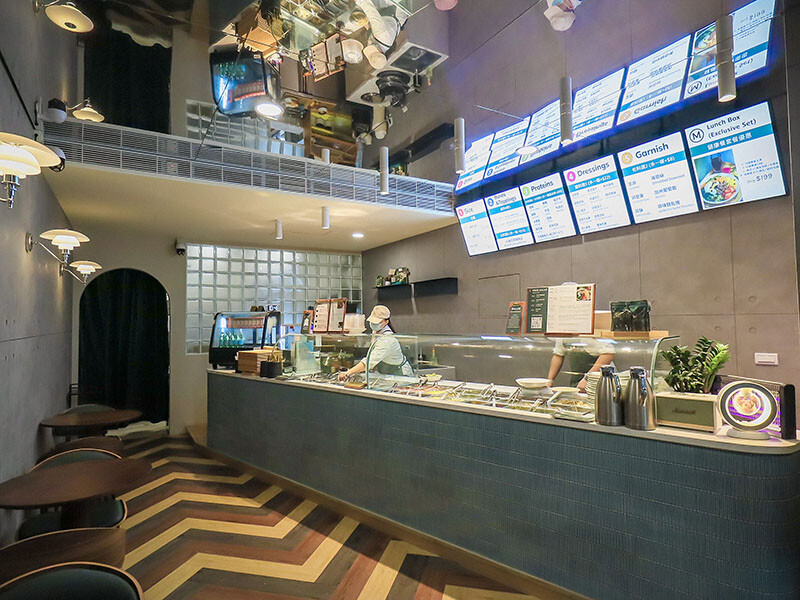 餐點以份量區分價位,大份$238可挑選3種蛋白質,中份2種蛋白質$198,還有一類是蔬食無肉$158,三種選其一,再依序選擇料底、主料、蛋白質、醬料和佐料。