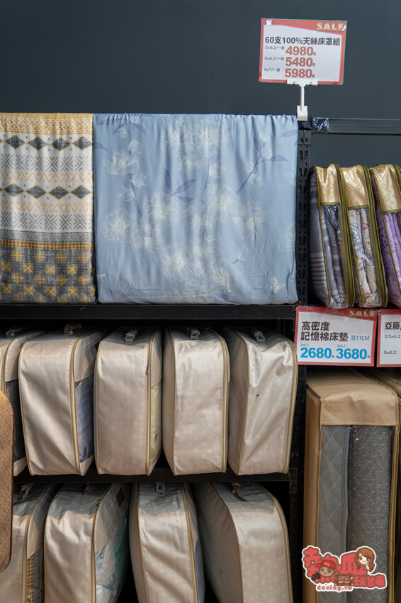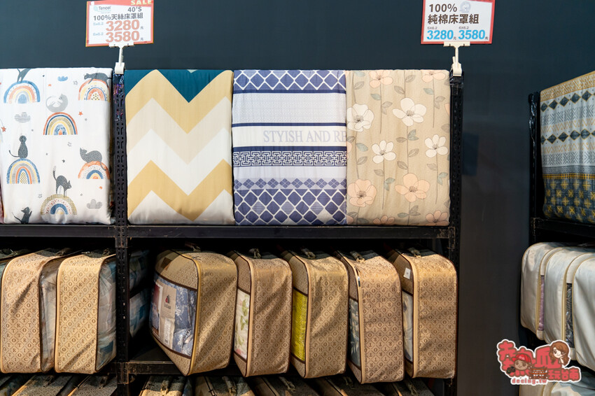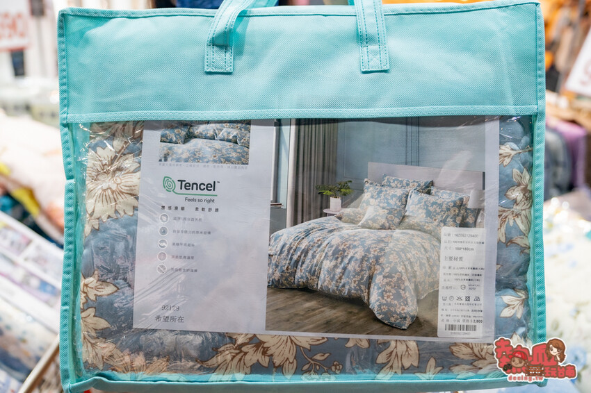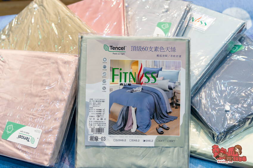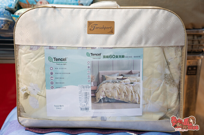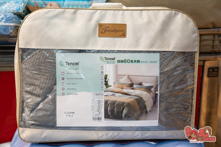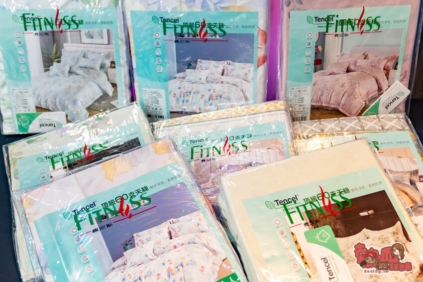 舒適的床墊少不了舒適的外衣,選擇良好的床包、被單等很重要,多利寶寢具特賣會現場展售了多種舒適優秀的床包,有40支100%天絲床包、60支100%天絲床包、100%純棉床包等等各式材質任君挑選,自家設計的多款獨家花色款式,工廠自產自銷價格超優惠,可以買到外面買不到的價格,多選購一組定期更換保持良好衛生也不錯。