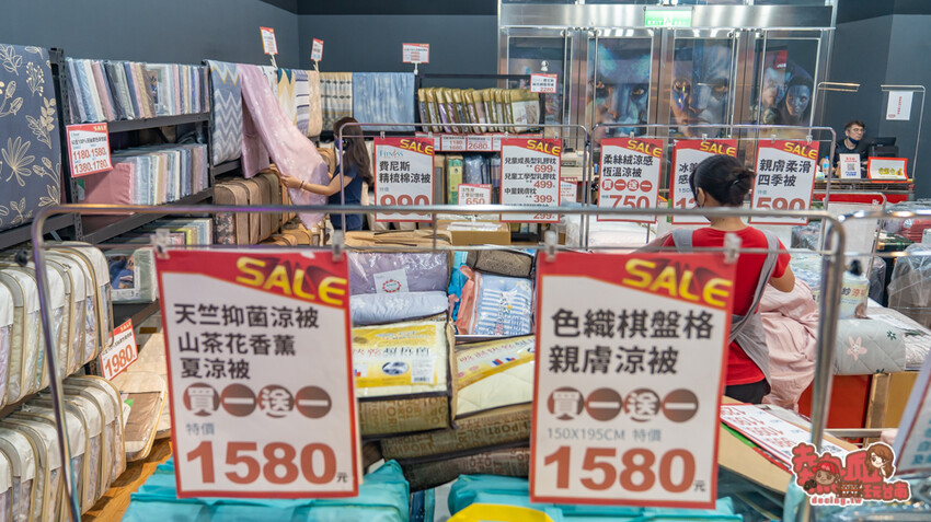 夏日的南臺灣氣候酷熱難耐,潮濕且高溫,如果你晚上經常因為溫度睡不安穩,可以將被子更換為涼被,讓睡眠時皮膚觸感涼爽,降低體感溫度,現場多款多利寶涼被通通大特價,還有部分款式買一送一超優惠!現場提供多款不同涼被可供選擇,挑選一件喜歡的材質與花色,讓晚上不再熱醒吧!